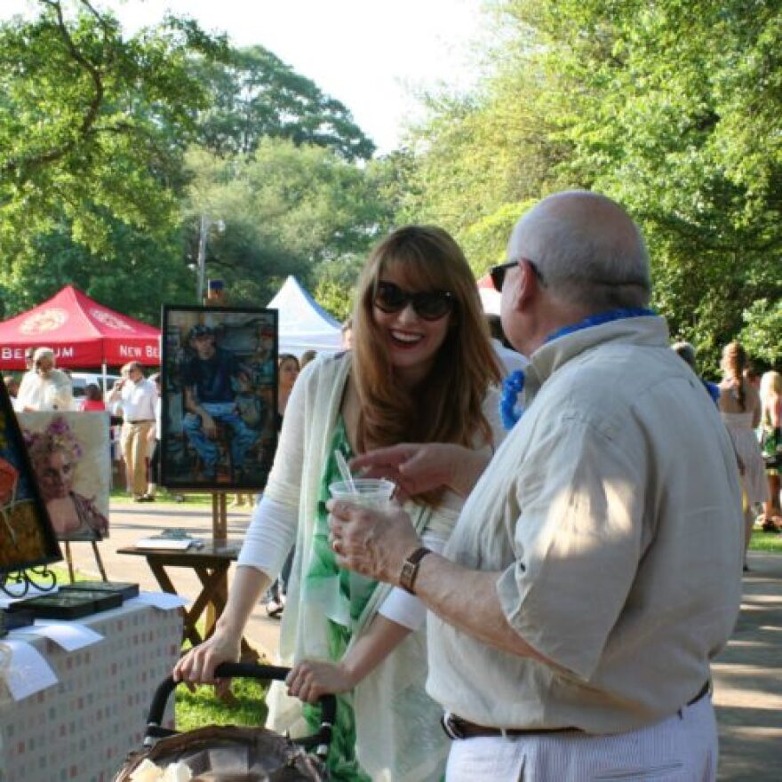 Blend of the Bayou is a Sunday afternoon silent auction. Patrons gather on the bayou and enjoy food, drinks, and art. There is local art from 15 artists available for purchase in the silent auction. The LA Jazz Quartet is playing live music. Over 25 local professional and home chefs, known as "The Men Who Cook," are providing food. Several vendors, including five home brewers, have samples of their unique drinks.