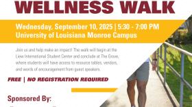 The University of Louisiana Monroe (ULM) will host a Suicide Prevention Month Wellness Walk on Wednesday, September 10, 2025, from 5:30 p.m. to 7:00 p.m.